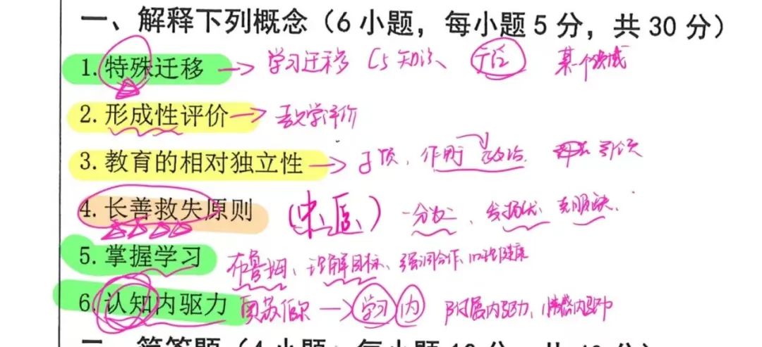 在这个阶段,教学法这本书应该能过6-7遍,这时候要注意形成自己的知识框架,思维导图是比较好的检验方式,在写思维导图时,如果发现忘了某个知识点就翻书再背诵。接着借助导图展开知识背诵,整个输出过程我会进行录音,回宿舍的路上或者睡前听。